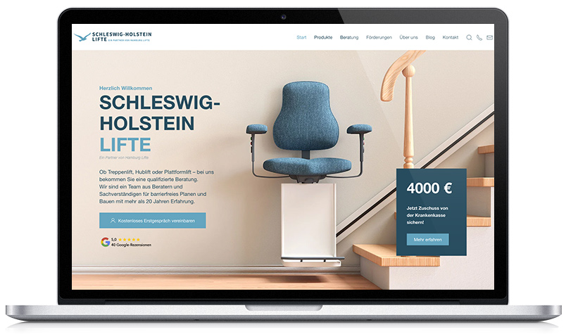 Konzeption, Design und Entwurf der Internetseite: Schleswig-Holstein Lifte - Unabhängigkeit bedeutet Lebensqualität für Sie und Ihre Familie.