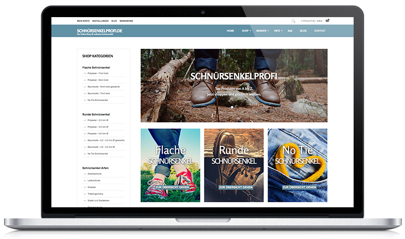 Schnürsenkelprofi.de - Online Shop : Konzeption, Design und Entwurf der Internetseite: Schnürsenkelprofi.de - Der Online Shop für exklusive Schnürsenkel